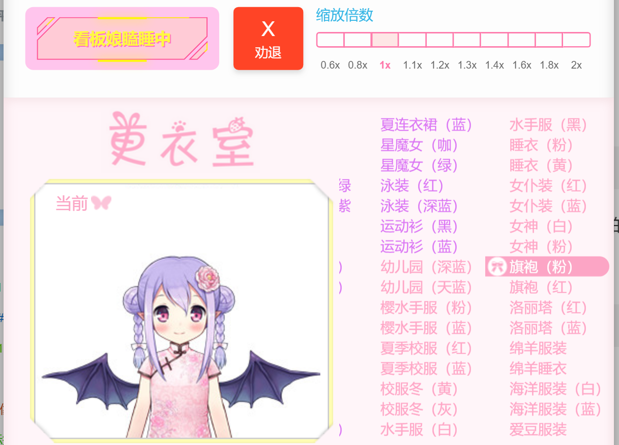 解决方法:关闭看板娘并刷新页面 或者 不要频繁换装 或者 不要多开页面以减少看板娘数量内藏很多彩蛋,然鹅死在了优化上,已经一个多月没更新了,估计很难重新开始并继续优化下去了。如果看板娘影响访问,请劝退她后刷新页面建议 主频 > 3.7GHz & ram > 16G 访问。实测经测试Windows Edge(Chromium版)对内存的整理十分及时,能控制在500M以内。但如果你是个变装狂且,且用着Chrome浏览器,32G都可能会炸。。。在Win10_1809 16G*2_3600MHz 3700X_4GHz(*) GTX1066 Chrome74下连续换装10-50次后....